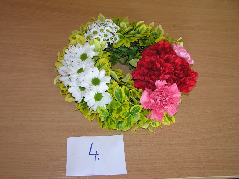 Dívky měly za úkol vytvořit vypichovanou misku, k dispozici měly růže, karafiáty, germínky a tulipány. Časový limit na práci byl 1 hodina. Všechny soutěžící vytvořily krásná aranžmá, podle vyjádření paní Nesvadbové, odborné floristky, byly práce technicky velmi dobře zvládnuté. Porota tedy měla jako každoročně velmi těžký úkol, určit výsledné pořadí prací. Po krátké poradě bylo rozhodnuto: loňská vítězka územního kola, Dominika Hrušková ze ZŠ Žiželice, obhájila své prvenství a postupuje do regionálního kola. Další pořadí: 2. místo Natálie Schovánková (ZŠ Žiželice), 3. místo Kateřina Koudelová (MZŠ Velký Osek), 4. místo Tereza Mokráčková (ZŠ Velký Osek).