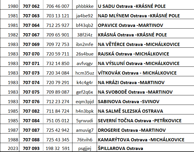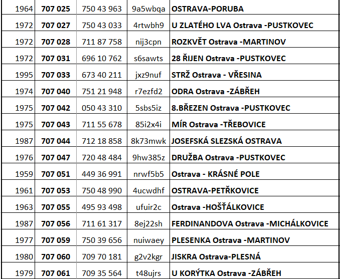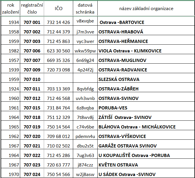 Seznam základních organizací pod Územním sdružení ČZS Ostrava 707