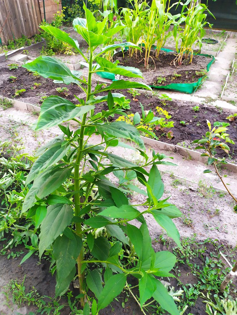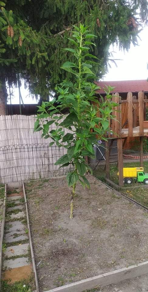 Nadzemní část - list a stonek: Topinambury tvoří velmi silné rostliny s bočními výhony a stovkami velkých listů. Dosahují výšky 2 - 3 metrů. Využívají světla asi o 100% lépe než lesní stromy. V tom spočívá tajemství jejich mimořádné úrodnosti. Listy topinamburu jsou většinou vstřícné, protáhle vejčité, zřetelně zubaté a dlouze řapíkaté. Na líci jsou drsné, na rubu bělavě pýřité, lodyhy i listy jsou chloupkaté.