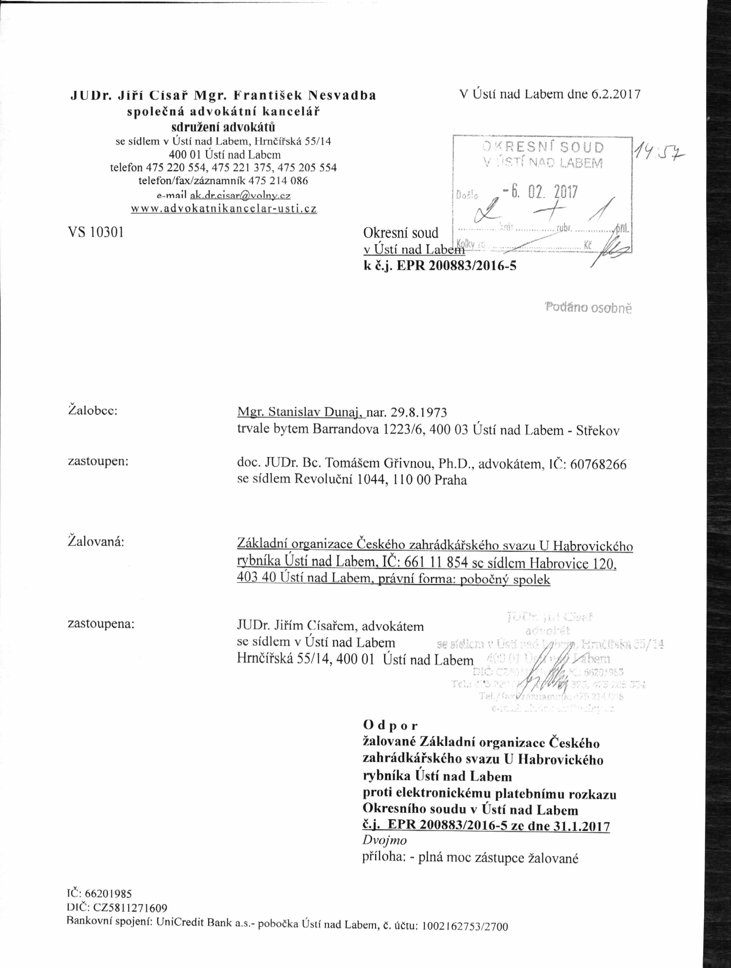 obracím se na Vás dle v příloze připojené plné moci v právním zastoupení Základní organizace Českého zahrádkářského svazu U Habrovického rybníka Ústí nad Labem, IČ: 661 11 854 se sídlem Habrovice 120, 403 40 Ústí nad Labem, právní forma pobočný spolek, a to ve věci, která měla být projednávána na 17. zasedání Zastupitelstva města Ústí nad Labem, jako bod programu č. 32 - ukončení nájemní smlouvy - ZO ČZS U Habrovického rybníka, kdy má být tato problematika projednávána při jednání Rady města Ústí nad Labem dne 14.12.2016.