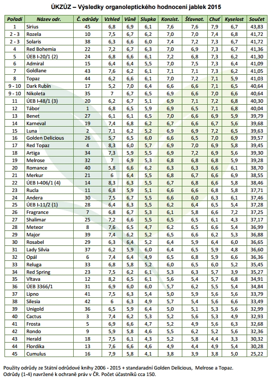 Dne 2. prosince 2015 proběhla v Lysicích tradiční degustace jablek, které se v letošním roce zúčastnil rekordní počet 150 hodnotitelů z řad šlechtitelů, pěstitelů, školkařů a dalších významných specialistů oboru. Hodnoceno bylo 41 odrůd registrovaných či s udělenou ochranou práv v ČR z období let 2006 – 2015. Vedle klasických odrůd účastníci hodnotili i 7 odrůd sloupcovitého charakteru růstu.