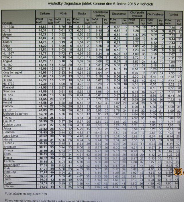 Výsledky degustace (staženo z http://www.zahrada.cz/):
