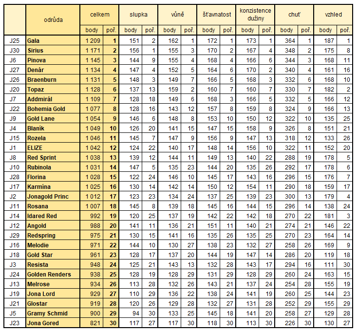 Pořadová čísla u jednotlivých odrůd na fotografiích odpovídají pořadí, v jakém byly hodnoceny v rámci degustace (ne výslednému pořadí).