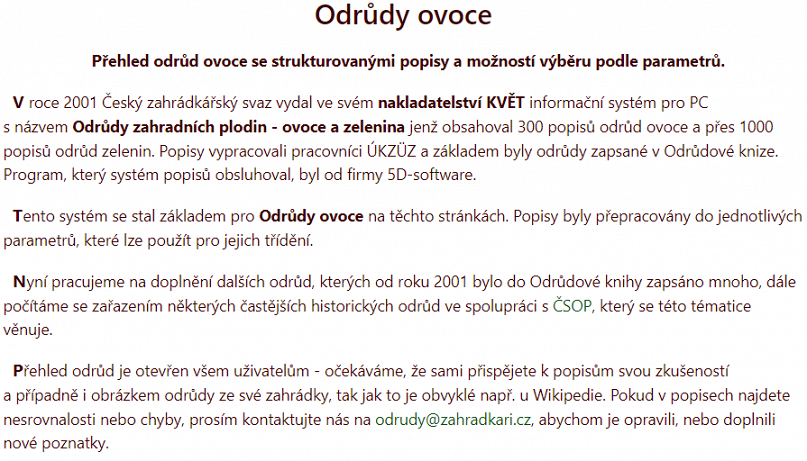 Více informací naleznete na ústředních stránkách ČZS pod odkazem https://www.zahradkari.cz/odrudy/