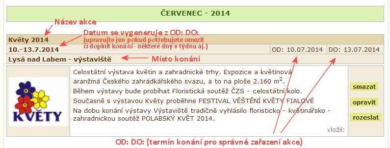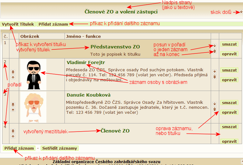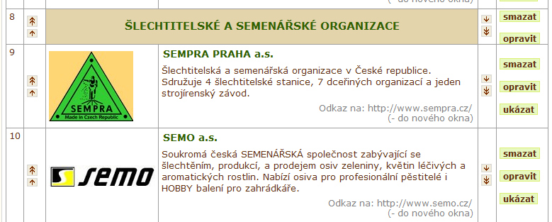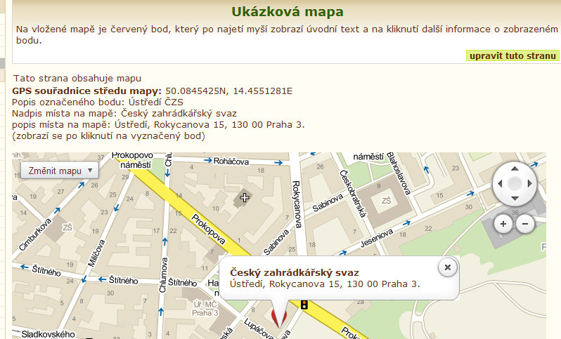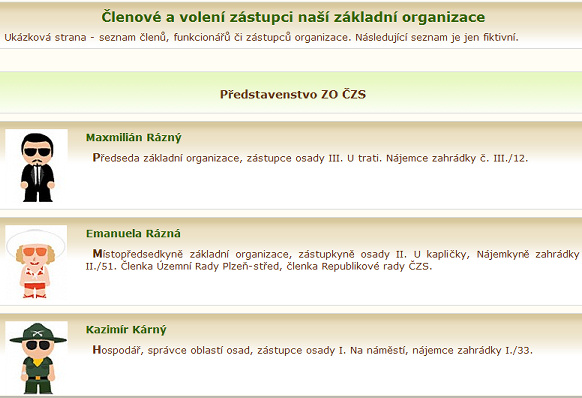 A takto se zobrazí pak na stránce uživatelům. (zde již došlo ke zkrácení názvu Český zahrádkářský svaz na ČZS)