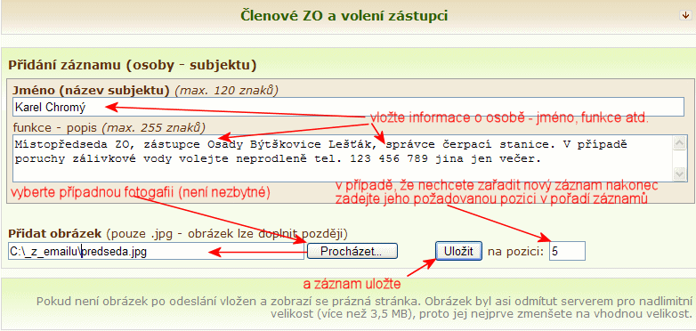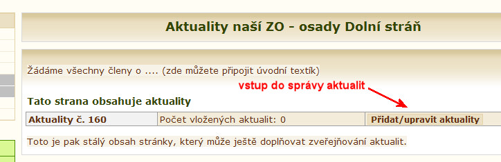 Hned z počátku, když jsou stránky nové, je dobré doplnit základní údaje o ZO.