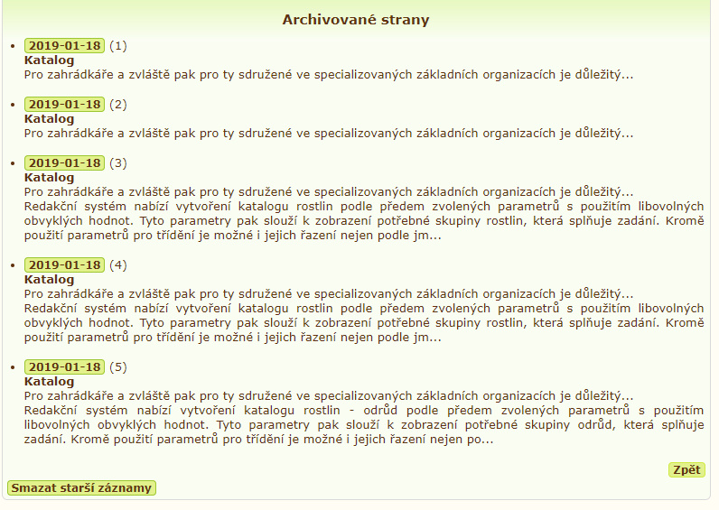 Kliknutím na datum se vám zobrazí tabulka minulých přihlášení - to pro kontrolu, zda se někdo nesnaží "upravovat" stránky za vás.