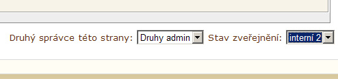 Pokud tedy potřebujete chránit obsah některých stránek, zadejte nejprve v základním nastavení heslo do první, případně i druhé interní oblasti – tím interní obsah aktivujete - teprve potom můžete jednotlivým stránkám přidělovat stupeň ochrany interní_1 nebo interní_2. Nastavit interní obsah můžete při zakládání strany nebo při její editaci pomocí výběrového menu vpravo dole. Obsah interních stránek je dostupný všem správcům – upravovat je ale může jen ten, který má k úpravě strany poskytnuto oprávnění od hlavního administrátora, nebo u těch, které si sám založí.