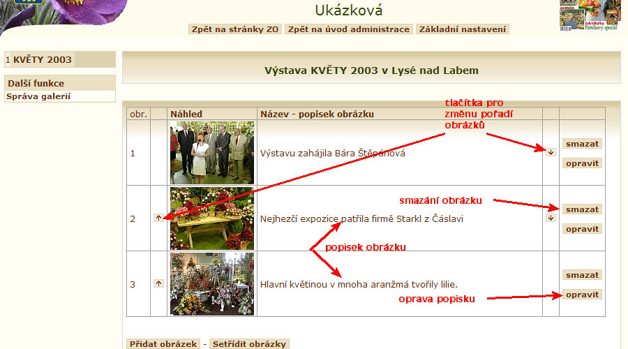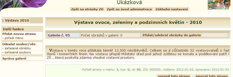 Podobně je upraveno i rozhraní správy menu i správy galerií, kdy jsou zpřístupněny jen ty stránky, které mají povolen přístup k úpravám dalším správcem.