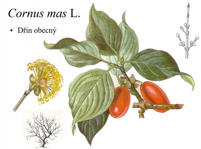 2-3 m vysoký keř kvete 2 včelí pastva, plod dřínka
