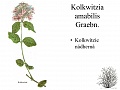 2 m keř, kvete lososově růžovými květy, po odvetení vatovité