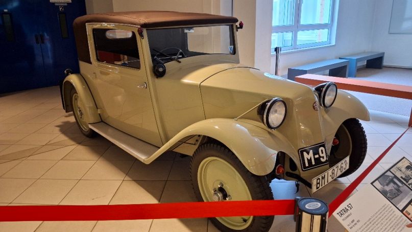 V muzeu osobních automobilů Tatra jsme si prohlédli rozsáhlou sbírku a historický vývoj dopravních prostředků. Velké překvapení pro nás bylo vystavení osobního vozidla Tatra T 57 tazv. Hadimršky-rok výroby 1933, které muzeu věnoval šlapanický občan MVDr Karel Zeman.
