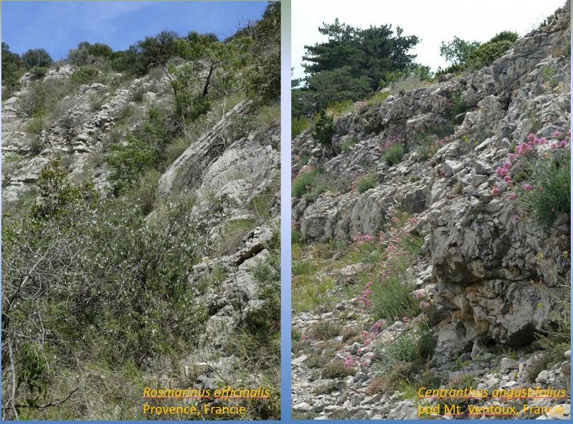 je tvořeno nízkými keři a bylinami tymián (Thymus vulgaris), rozmarýna