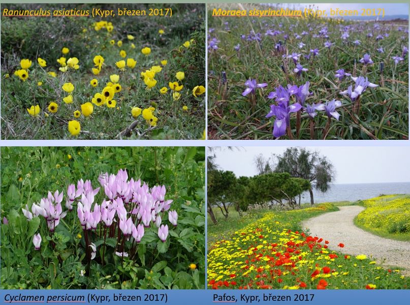 (Globularia alypum), Sarcopoterium spinosum, sasanky (Anemone), asfodely