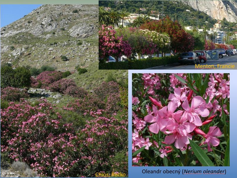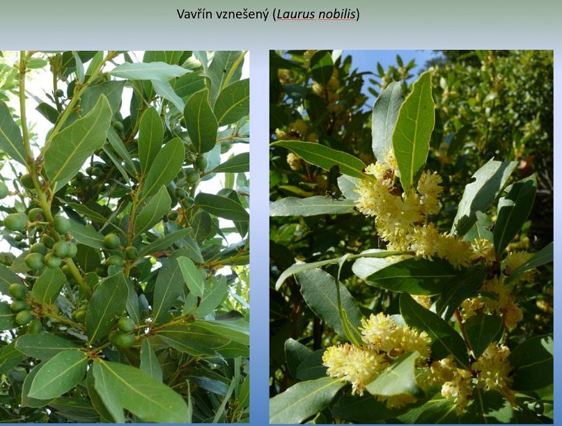 cist, kalina (Viburnum tinus), sápa, vavřín, oleandr