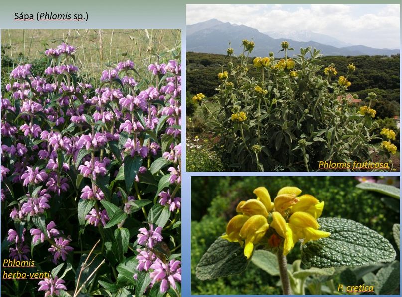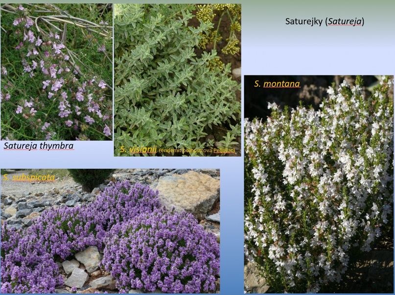 ožanky (Teucrium), dobromysl (Origanum), saturejka (Satureja), sápa (Phlomis)