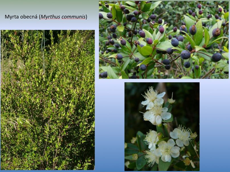 granátové jablko, korkový dub, fíkovník, cypřiš, zmarlika, planika, rozmarýn,