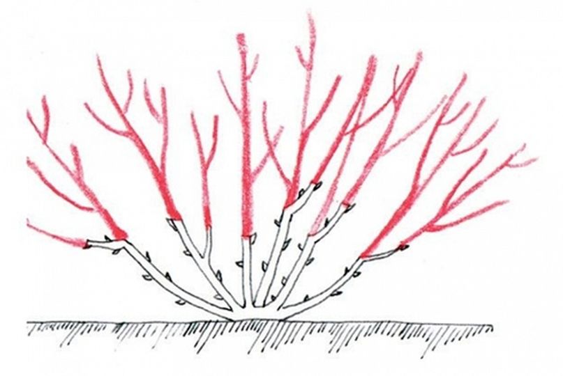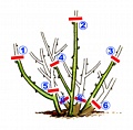Na podzim až začnou shazovat listy počátkem listopadu podzimní řez pouze usnadňuje jarní řez - sesadíme pouze pod rozvětvení květů 20 %. Na jaře koncem března, odstřihnout vše staré poškozené a nemocné. Odtranit tenké větvičky. Potom paralelní a rostoucí do keře. Mělo by zůstat 5 kosterních větví a na nich 15-20 oček.