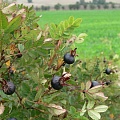 Výška 50 – 100 cm – rozrůstavá do šířky, větve – velmi ostnité, květy – krémově bílé, kvete 5. – 6., plody – tmavě fialové až černé šípky