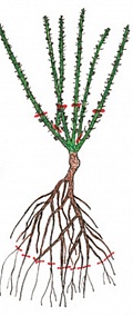 Problémem růží je trnitost. Jdou dobře řízkovat ale řízkovance jsou málo mrazuvzdorné. Proto se většinou množí očkováním do kořenového krčku podnože.