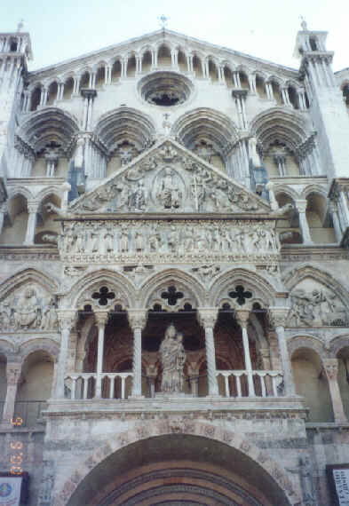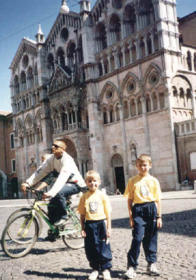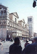 Ferrara - Prohlédli jsme si středověké centrum s mnoha paláci a zahradami. zámek se 4 mohutnými věžemi je obklopen vodním příkopem. krásnou katedrálu v románsko-gotickém slohu s velkolepým průčelím.