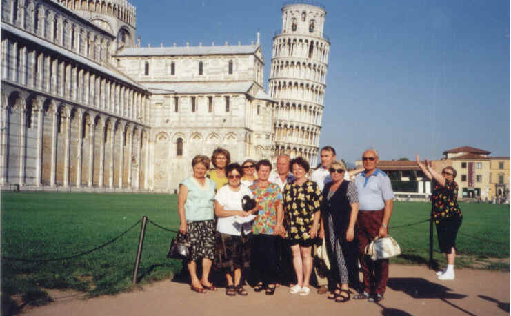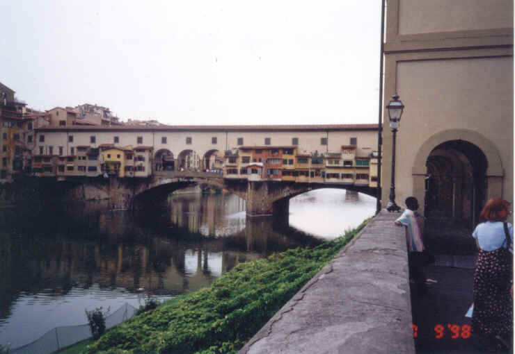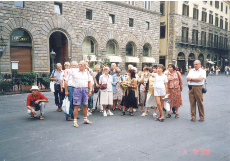 Florencie - starobylá metropole toskánska na řece Arno. Nejýznamnější památkou je katedrála Santa Maria del Fiore ze 13 století. Nejstarší most přes řeku Arno - Ponte Vecchio, známý jako most zlatníků. Účastníci zájezdu z roku 1998.