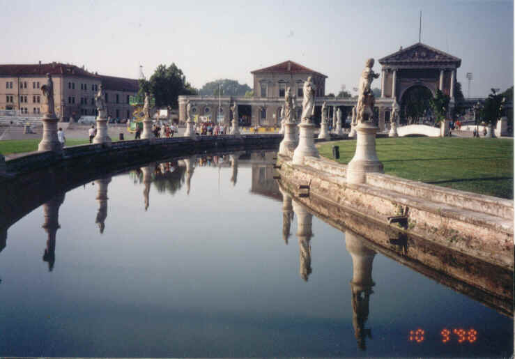 Prato della Valle - velký park se sochami významných osobností studujících na zdejší univerzitě |
