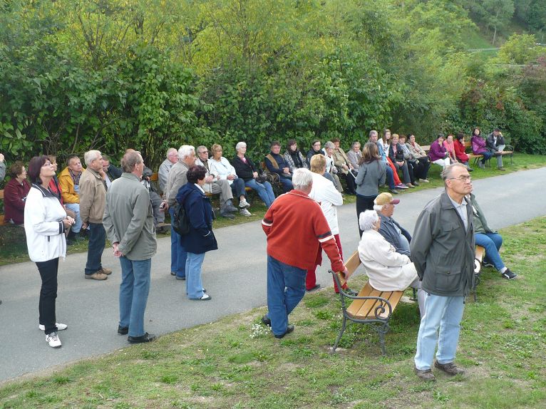 Na expozici navazuje také naučná stezka Antonína Práška, která zavede návštěvníky od zámku k Lurdské jeskyni a dále k soše sv. Václava. K Lurdské jeskyni nás přiblížil autobus, protože počasí bylo nejisté. Při zpáteční cestě od Lurdské jeskyně nás překvapila vydatná sprška. Rádi jsme využili útulnost autobusu, který nás zavezl zpět k zámku a místnímu sklípku, kde nám vedoucí zájezdu Bohumír Hanák po dohodě s místním vinařem umožnil ochutnat a zakoupit pravý nefalšovaný burčák.