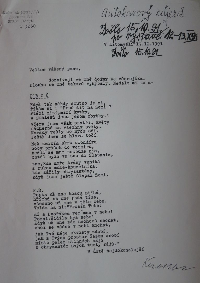 Velice vážený pane,