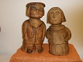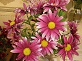 Výstava byla doplněna krásným aranžmá z chryzantém a velice krásnou dřevořezbou, která byla citlivým doplňkem podzimních květin.
