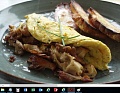 Spotřeba: 4 větší rajčata. 250 g hlívy. 1 vejce, máslo, citrónová šťáva. pepř. sůl. na ozdobu petrželka