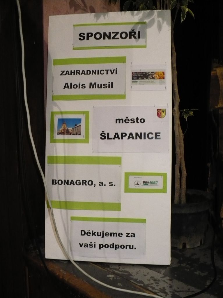 K nejvěrnějším sponzorům patří: město Šlapanice, zahradnictví Musil, Bonagro a. s., Vinotéka Čechova, Oseva Agro Brno, Aromatica CZ s. r. o. a v letošním roce jsme získali sponzorství od obce Ponětovice a Kadeřnictví Anežky Umláškové.