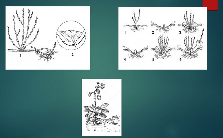 pomocí dřevitých řízků: Rybíz, angrešt, josta, zimolez. 15-20 cm dlouhé výhony o síle tužky (kde je možnost pravidelné závlahy, jsou možná i kratší), založíme ve sklepě nebo pařeništi, na jaře tzv. pícháme nebo sázíme pomocí rýče, v červenci nakopčíme, vysazujeme v září na stanoviště