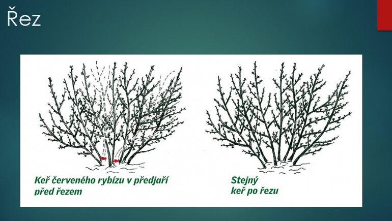 Řez stromkového angreštu – odstraňujeme nemocné a zahušťující větve. Dále odstraňujeme odnože meruzalky – lákadlo pro mšice
