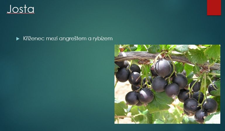 Josta – kříženec angreštu a rybízu. Je vhodnější keř než stromek