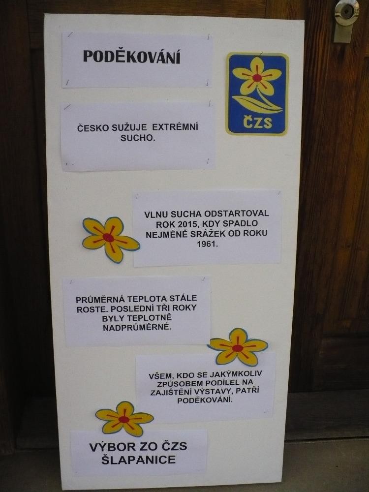 V letošním roce Česko “sužovalo“ extrémní sucho. I přes tuto skutečnost se nám podařilo nashromáždit dostatečné množství exponátů od členů naší organizace a také od nečlenů, příznivců zahrádkaření. Výstava byla obohacena krojovanými panenkami u příležitosti šlapanických slavností.
