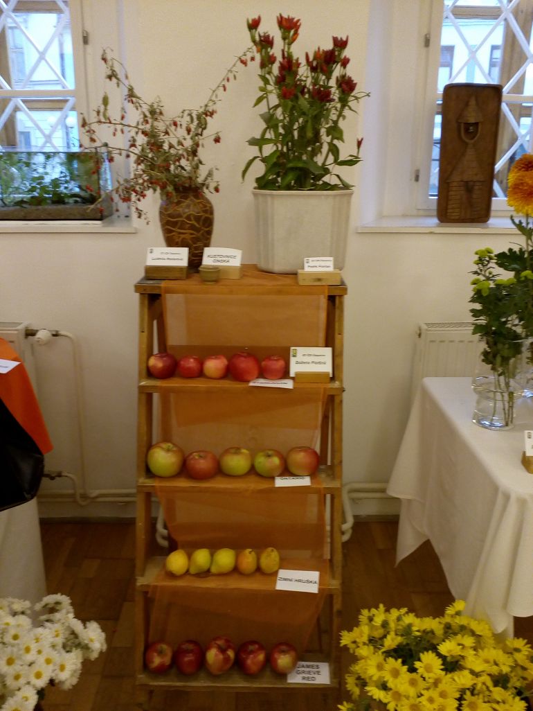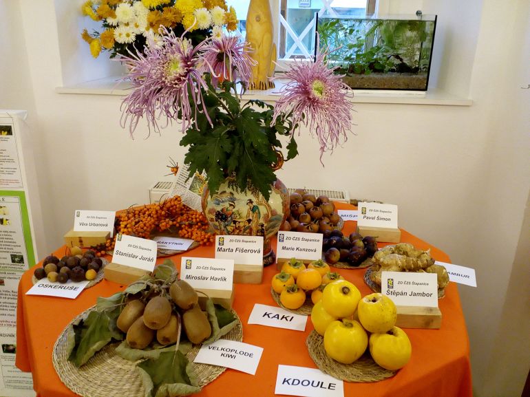 Byly vystaveny: jeřáb oskeruše, mišpule, rakytník, maloplodé i velkoplodé kiwi, topinambury, kdoule, fíkovník smokvoň, KAKI.