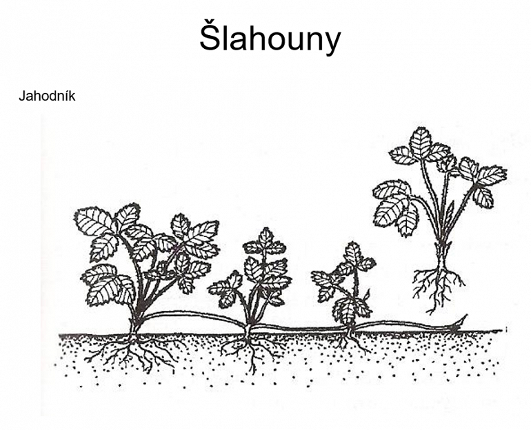 Jahodník matečná rostlina vytváří v létě šlahouny, na