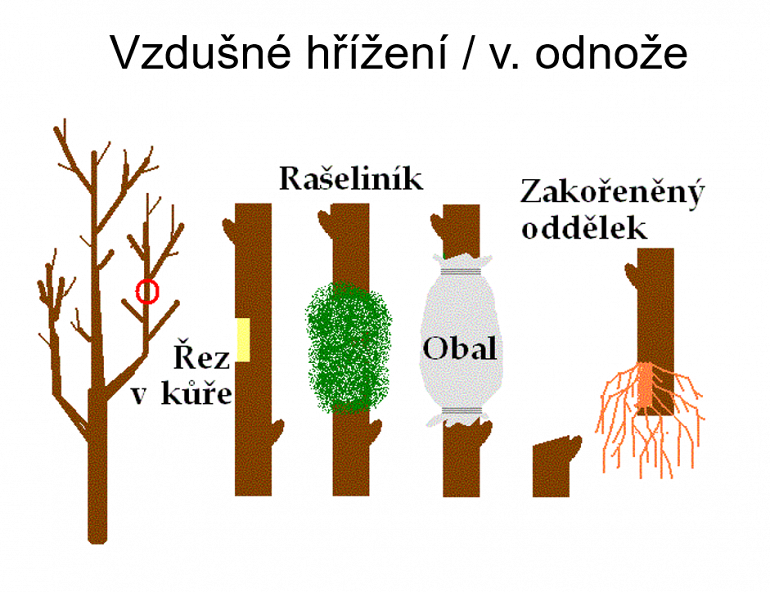 vytvoří poranění nebo zaškrcení drátem toto místo se obalí substrátem a pro
