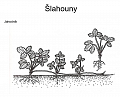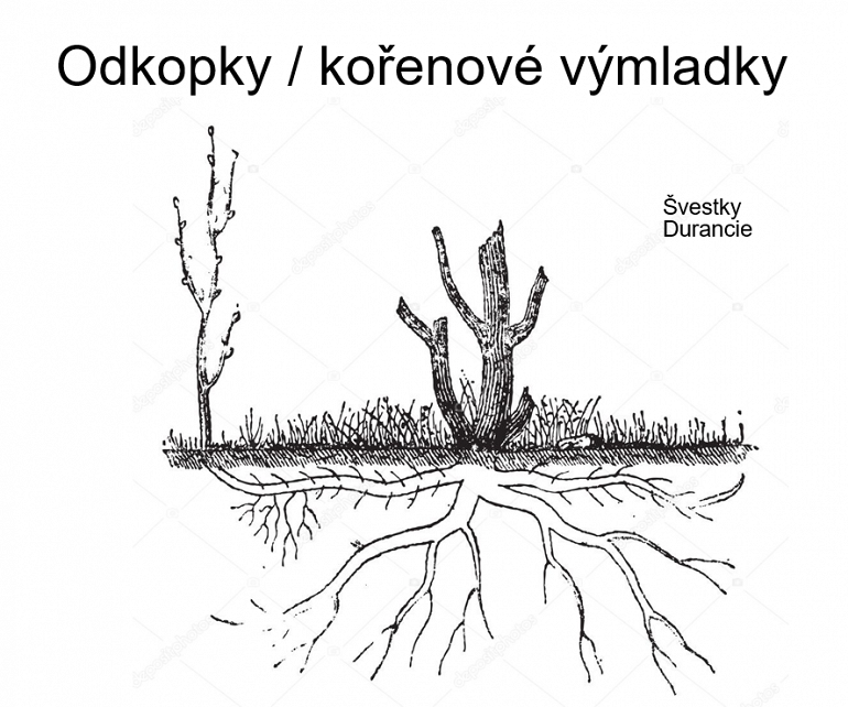 Kořenové výmladky. Rostliny vyrůstající z kořenů odryjeme