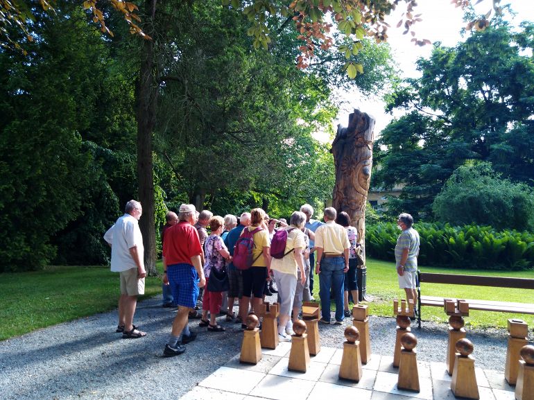 V Litovli na nás čekala průvodkyně paní Elgnerová, které nás seznámila s historií města a zajímavým způsobem hovořila o slavném Gustavu Frištenským, který zde žil a je po něm pojmenováno i místní gymnázium.