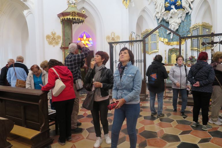 Po vydatném obědě jsme se vydali k poslednímu cíli naší cesty do kostela Jana Nepomuckého na Zelené hoře. Kostel byl vystavěn v roce 1722. Projektem stavby byl pověřen slavný architekt Jan Blažej Santini. V roce 1994 byl kostel na Zelené hoře zařazen do Seznamu světového kulturního dědictví UNESCO. Paní průvodkyně nás provedla s velmi zajímavým výkladem o celé historii místa na Zelené hoře. Po prohlídce kostela jsme se vydali zpět domů.