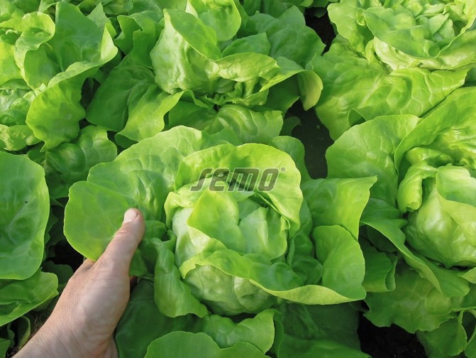 Salát, vyšlechtěn z odrůdy kamenáč, menší dobře uzavřená vzpřímená hlávka, nepodehnívá i při sponu 25-20 cm