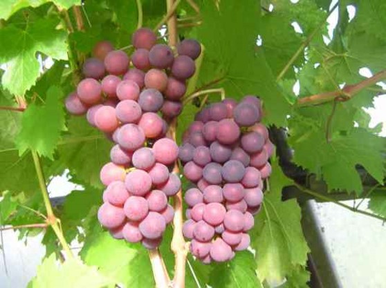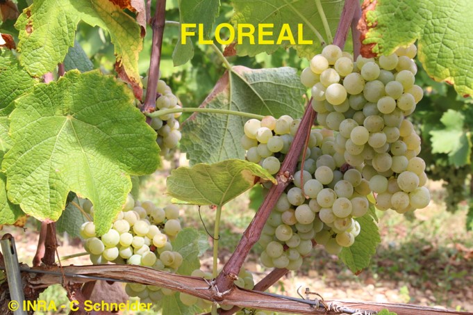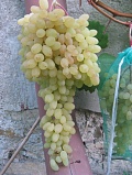 Největší bobule (15-25 g), velmi velké hrozny 600- 1200 g, slabě muškátová chuť, problémy s kvetením vysoká odolnost k plísni, velmi ranný