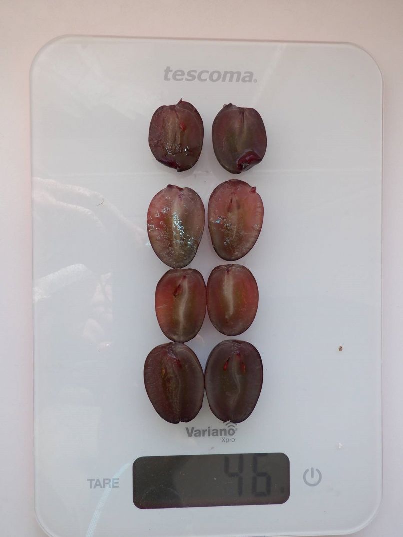 raná odrůda (polovina září), dobrá odolnost k plísni révové, velmi velké atraktivní bobule cca 10 g, hrozny přes 1 kg, vynikající harmonická chuť