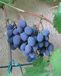 Ovocná chuť, raná odrůda, velmi silný růst, velmi vhodná odrůda na pergoly, vysoká odolnost k  mrazu a chorobám, bobule (4-5 g)