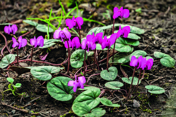 Brambořík Cyclamen,  u nás v holomrazech vymrzají, potřebují listovku kde se samy přesévají při holomrazech zakrýt netkanou textilií.