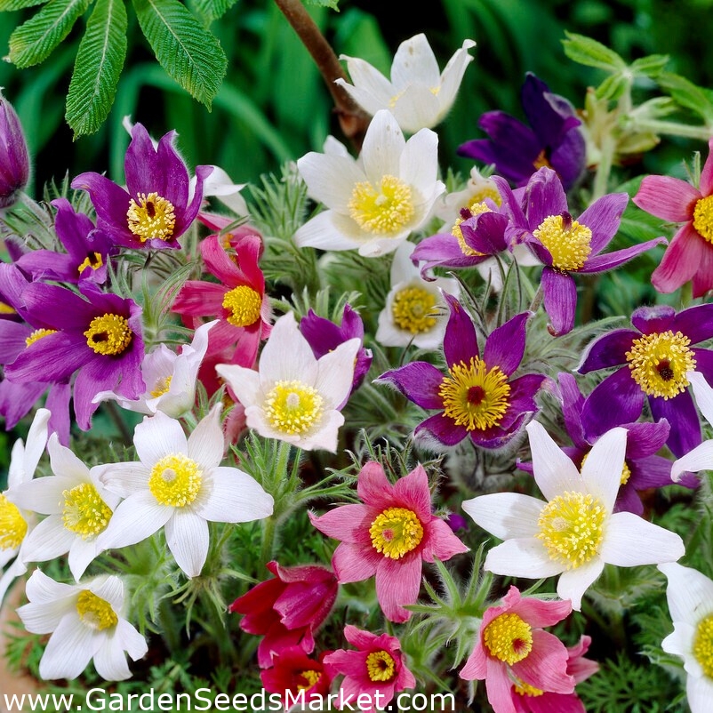 Koniklec obecný Pulsatilla vulgaris mulčovat štěrkem snadno se přesévají,