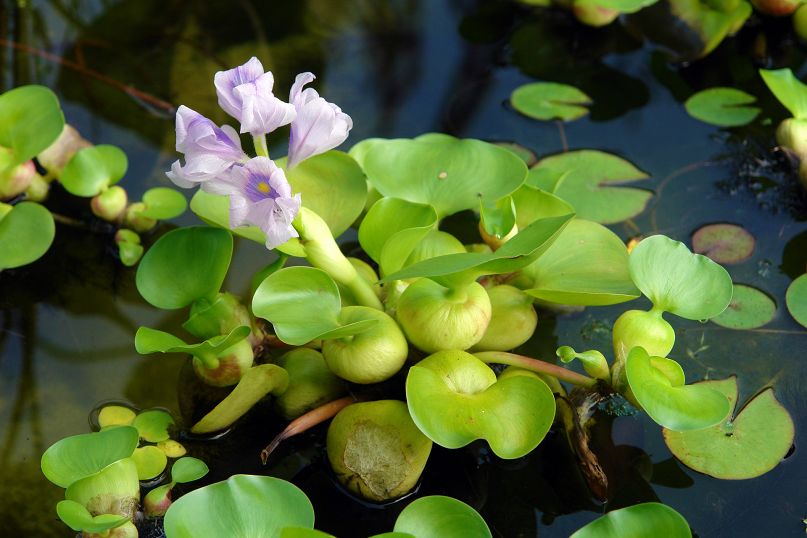 Vodní hyacint  Eichhornia crassipes ( Tokozelka nadmutá) u nás nepřezimuje a nesmí se prodávat
